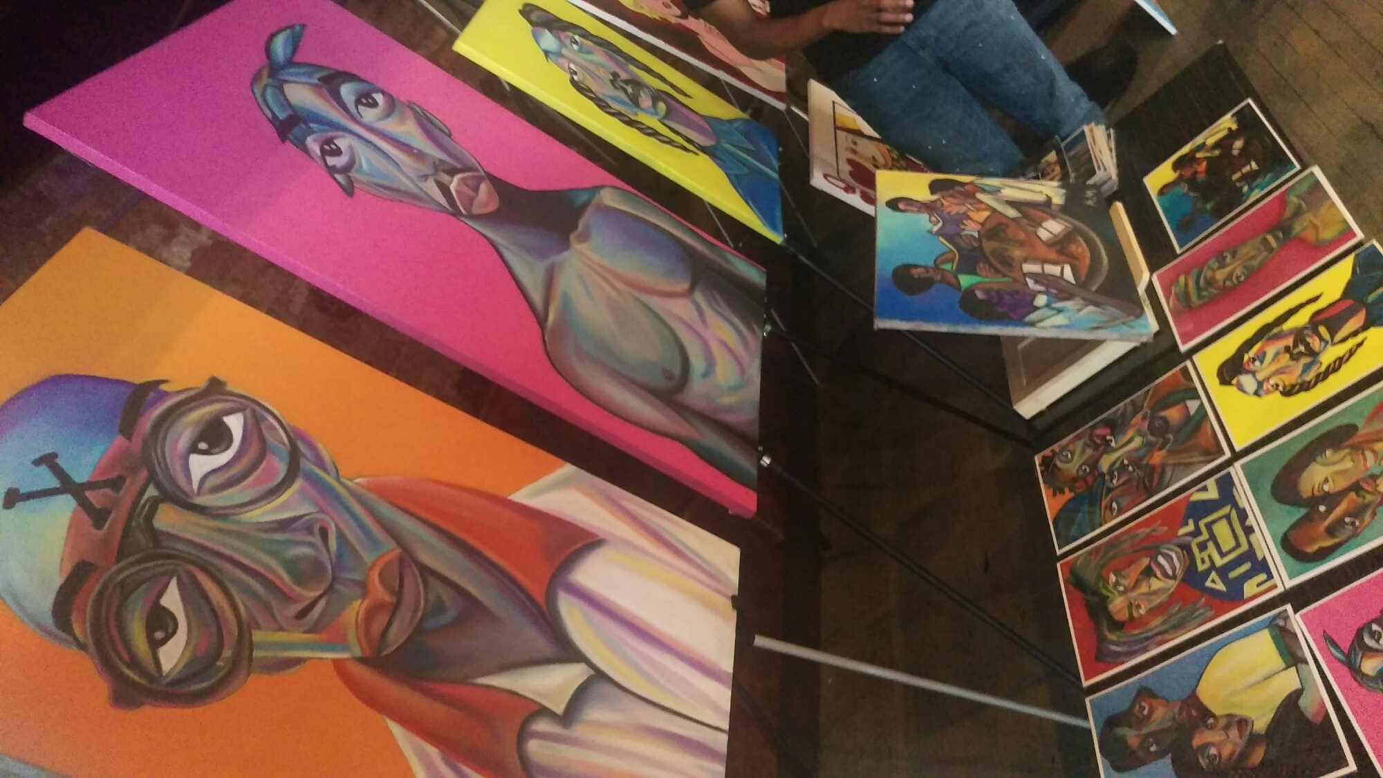 She has a wonderfully decorated 4-story townhouse with perfect spaces and nooks to display her variety of different styles of visual art from illustrations to landscapes.